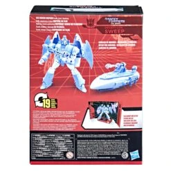 This Studio Series 86-10 Voyager Class The Transformers: The Movie-inspired Decepticon Sweep figure converts from robot to Cybertronian hovercraft modes in 19 steps. Remove backdrop to showcase Decepticon Sweep in the Heralds of Unicron scene. In the Heralds of Unicron scene from The Transformers: The Movie, Unicron reformats fallen Decepticons into the Sweeps, deadly hunters created to track down the Matrix of Leadership. Pose the figure out with the included blaster and blaster effect accessories and imagine re-creating this classic movie moment!