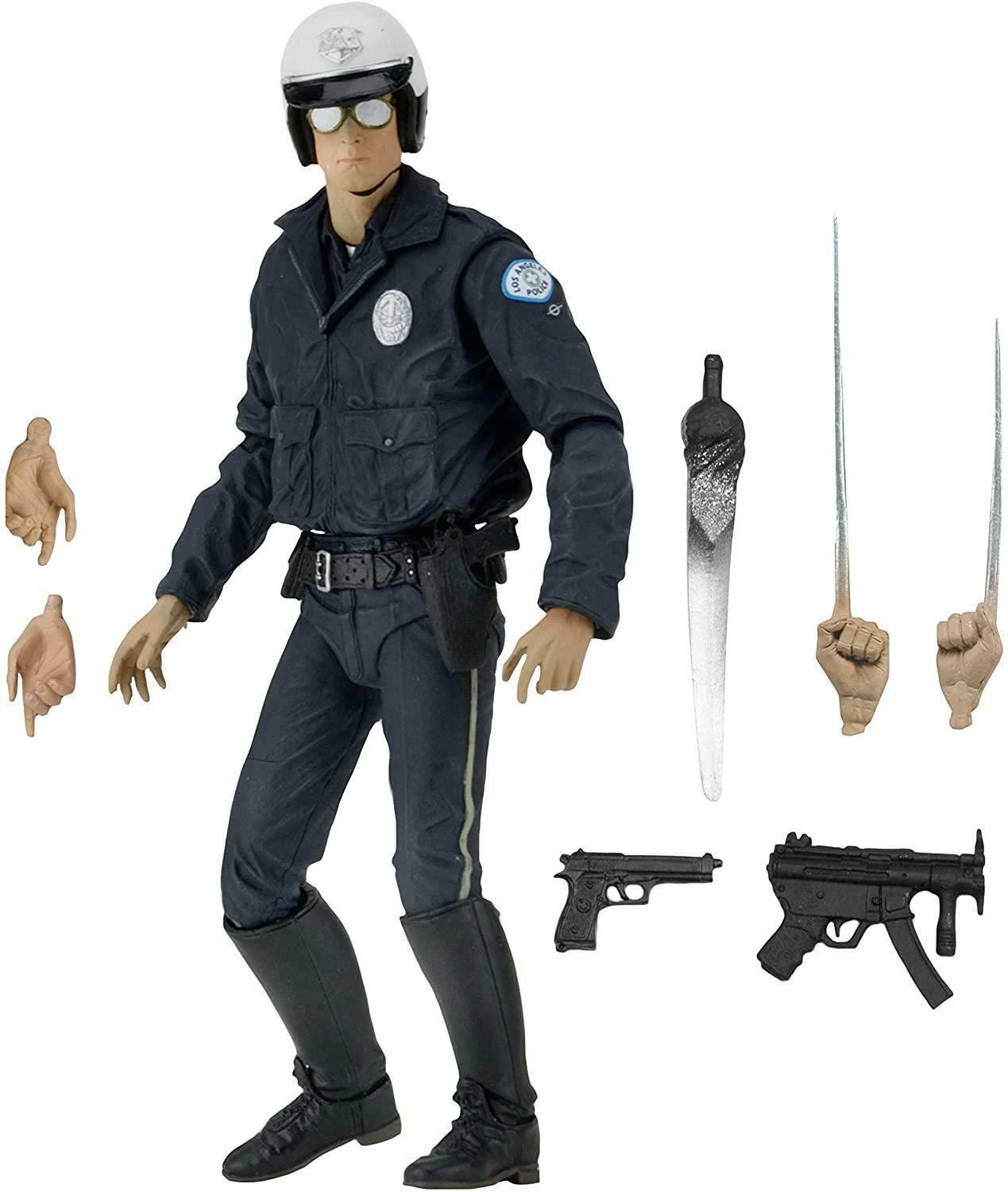 From the action-packed movie Terminator 2 , the Ultimate T-1000 (Motorcycle Cop) is the perfect companion piece to the Ultimate T-800 and Ultimate Sarah Connor figures. This deluxe 7″ scale action figure comes loaded with accessories to help recreate your favourite action scenes from T2: plenty of interchangeable parts plus pistol and machine Hun accessories.